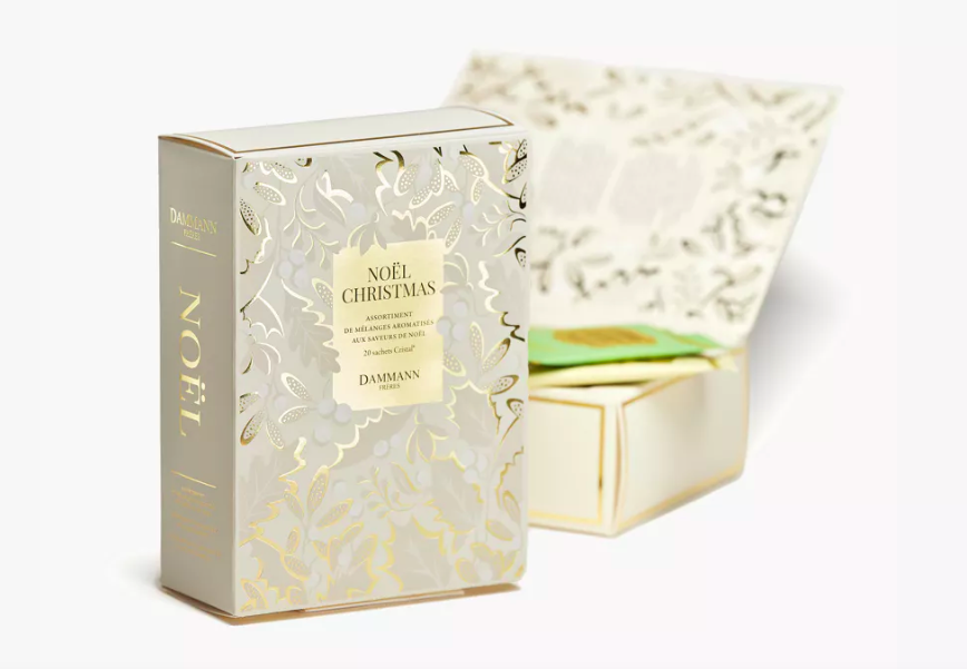 Un décor de feuillage d'hiver habille avec élégance et délicatesse ce coffret contenant 5 mélanges aux saveurs de Noël.20 sachets Cristal® enveloppés de thés ou d'infusions de Noël :Thé noir Christmas Tea – 4 sachets ;Thé Vert Christmas Tea Vert – 4 sachets ;Thé blanc Christmas Tea Blanc – 4 sachets ;Rooibos de Noël – 4 sachets ;Infusion de Noël - 4 sachets